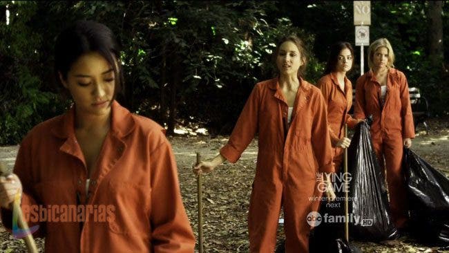 Aquí estoy de nuevo, mis queridas lesbicanarias. De vuelta al mundo de Rosewood con mentiras, chicas lindas y A-. Porque A- sigue en la vida de nuestras chicas pero ¿será que en está segunda tanda de capítulos de la segunda temporada cuando descubramos quién es? Casi todo en esta vida es relativo. Así que allá vamos. Después del capítulo de Halloween (dónde entendimos un poquito más cómo era Allison) recordamos que nuestras chicas se habían metido en problemitas por el tema de cumplir con lo que las muñecas diabólicas indicaban. Ya recordáis eso de desenterrar “algo” con la pala que resultó ser el arma homicida. Y la malvada Jenna alegrándose del lío en qué estaban nuestras pequeñas mentirosas. Bien, pues un mes después nuestras chicas están cumpliendo con su castigo recogiendo basurita con unos monos naranjas muy sexys. Lo sé, lo sé, no tienen nada de sexys pero ¿quién ha dicho que no puedo automotivarme escribiendo el resumen?