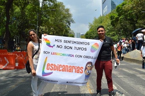 Felices de la vida nos subimos al UBER, Daniela con una mochila en la espalda, Victoria con una mochila pequeña de lado y yo con la mochila de mi cámara en la espalda y en mano el hermoso cartel de Lesbicanarias con el mensaje más hermoso de toda la marcha “Mis sentimientos no son tuyos, soy Lesbicanaria con orgullo”. Claramente yo iba hiper emocionada por conocer a cada una de ustedes.