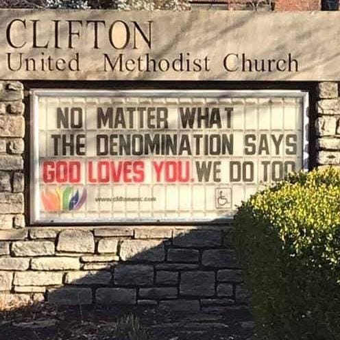 En respuesta a esto, varias iglesias metodistas de Estados Unidos decidieron rebelarse y manifestar su desacuerdo con preciosos mensajes de amor y aceptación. Que, ¿no se supone que ese debería ser el corazón de todas las iglesias y religiones? Abajo les dejo algunos ejemplos de ese mensaje inclusivos, para que los vean cuando les haga falta y las veces que lo necesiten. Porque a veces nos cae bien un apoyo como este: