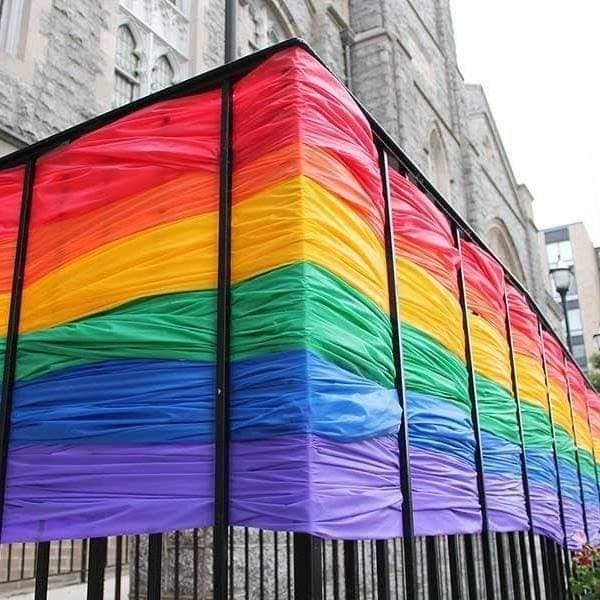 La iglesia Foundry tapizó sus paredes externas con una enorme bandera gay