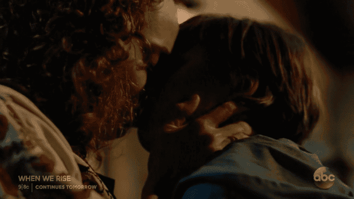 Desde su nueva posición en el Comité de Diversidad, Ken está intentando organizar una marcha de protesta por el Día de la Libertad y explica que necesitan un símbolo. Hemos hablado del nuevo amigo de Ken, de nombre Gilbert, ¿verdad? Pues es nada más y nada menos que Gilbert Baker, el diseñador de la bandera LGBT, así que aquí tenéis el origen de todo, lesbicanarias. Pero claro, que Ken esté tan comprometido políticamente, genera un cierto conflicto en su pareja con Richard, que sigue manteniendo las apariencias de cara al público colegueando con políticos homófobos, así que Ken estalla un poco y trata de explicar que eso ya no se trata sólo de ellos dos, sino de toda una comunidad. ¡Qué bonito! Cleve y Roma han decidido que de cara a la votación contra la proposición irán puerta por puerta y pueblo por pueblo para recabar apoyos, con muchos portazos de por medio. De vuelta a casa Roma está en modo emotivo recordando Togo y, como Diane está al lado, tienen un momento y SE BESAN.