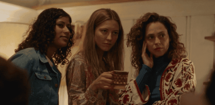 Estas dos parecen muy felices, pero Roma y Diane no dejan de echarse miraditas cuando esta última anuncia en la reunión con el resto de mujeres que le gustaría tener un hijo/a que criar allí mismo.