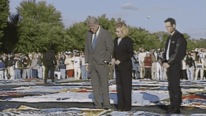 En When We Rise acaban de contarnos la crisis del sida en la comunidad gay y, diez años después, Cleve sigue en las mismas con el edredón conmemorativo que se inició precisamente al final del episodio anterior. Cada año lleva todo aquel trabajazo a los jardines que hay frente a la Casa Blanca y leen los nombres de todos ellos como una especie de homenaje, aunque el presidente no quiere recibirlos y pasa de ellos ampliamente. Cleve ya está en modo envejecido y lo mismo para Ken.