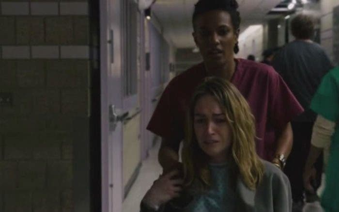 Antes de que las pillen, salen a toda leche del hospital y justo un taxi pasa por allí, porque todas sabemos que en las series los taxis suelen tener el don de la ubicuidad. Se montan como alma que lleva el diablo y escapan, se besan, se dicen te quieros, Amanita la abraza y le dice que ya está todo bien… Preciosa escena y las actrices maravillosas a la hora de transmitir las emociones del reencuentro. Chapeau. Riley y Nomi de repente se conectan y cantan un poquito la dichosa canción que han escuchado todos los sensates. Si os interesa, es “What’s up” de 4 Non Blondes. Amanita, que le está dando besitos en la frente a su novia para reconfortarla, ve que Nomi está un poco perdida.