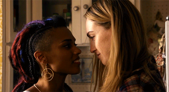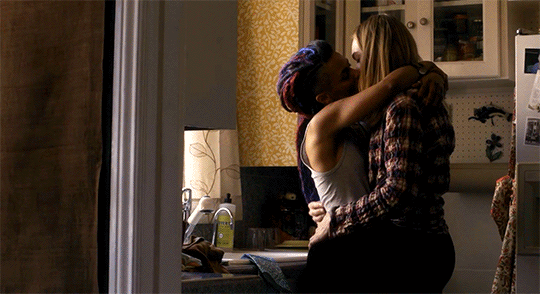 Al menos las dos se dan ánimos y se reconfortan. Y como los ocho sensates comparten emociones, a Nomi también le entra la pájara y se emboba mirando a Amanita, que está secando los platos. Digamos que tiene un momento “ay, mi novia es maravillosa, cuánto la quiero, necesito tocarla”. Por tanto, se acerca a abrazarla por la espalda y le empieza a dar cariñitos. Es una ternura verlas juntas, porque son tan felices que después se pegan un morreo para que nos congratulemos y, señoras, vale la pena verlo en movimiento.