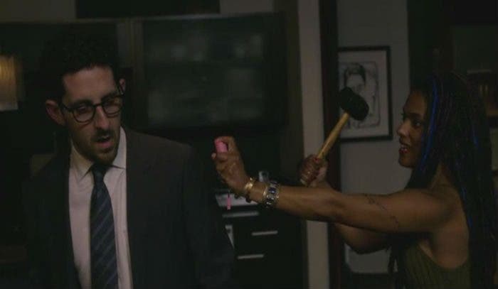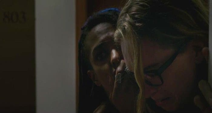 Will sigue con sus cosas de policía que no nos interesan un carajo, siendo sincera, así que mejor centrarnos en Nomi, que le dice a su suegra que flipa de que se lo estén tomando todo tan bien. Pero es que la madre de Amanita es muy mística, de la rama hippie de la vida, y le dice que como hija de los 60 que es, lo de escuchar voces lo ve del todo normal, ya que en aquella época se veía casi como un milagro. Amanita lo tiene claro y asegura que, en lo que a ella respecta, sigue siendo un milagro. Cursi, pero efectivo. Sólo hay que ver cómo la mira su novia. Por cierto, es fascinante cómo están continuamente prodigándose en detalles cariñosos, en este caso Amanita le lleva un vasito de té helado a Nomi y se dan un beso. ¿Habéis contado cuántos llevan desde el principio de la serie? Yo ya perdí la cuenta. Amanita, de hecho, está tomando una piruleta y pasa esto: