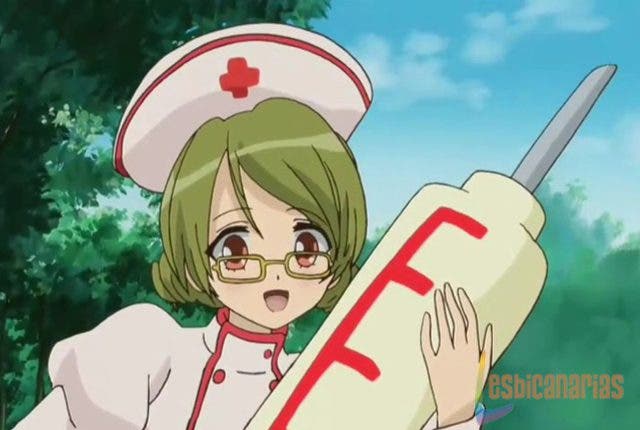 ¿He comentado alguna vez la suerte de Nagisa? Pues eso, que la chica cuando sale corriendo del cuarto tiene la buena suerte de darse de bruces contra la Hermana Dire (sí, la que tiene tanta actividad sexual como mi abuela, más o menos).