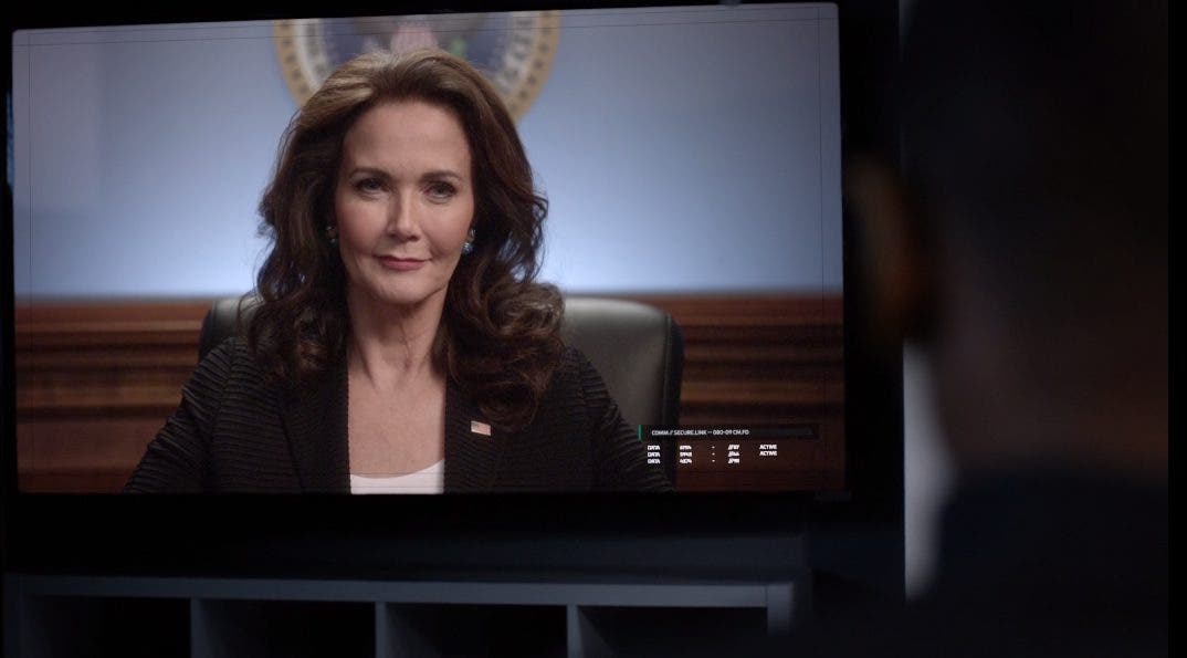 En la DEO, la presidenta llama para saber qué andan haciendo los Daxamitas. John le informa de que están cómodamente estacionados en la órbita terrestre, pero de momento no se mueven. La jefaza entonces le ordena que de ninguna de las maneras se enfrente a ellos porque podría provocar una guerra intergalactica y ya con Trump tenemos bastante.