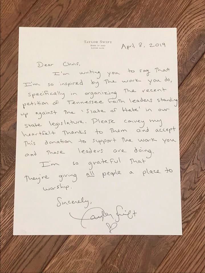 Así que la cantante se sintió inspirada por el trabajo que están haciendo y les mandó su donación acompañada de una carta: