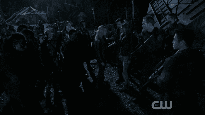 Clarke está muy harta de tener que hacer caso a los adultos, así que como veis toma el mando de la situación y se aúna con el grupo grounder del campamento para sacar al prisionero de Mount Weather y utilizarlo como mensajero. Abby todavía está en el puesto de canciller y ordena que vuelvan a encerrarlo hasta que les confiese algo. Aquí Clarke sonríe y básicamente se enfrente a su madre, pero con dos ovarios muy bien puestos y MOLÁNDOLO TODO.
