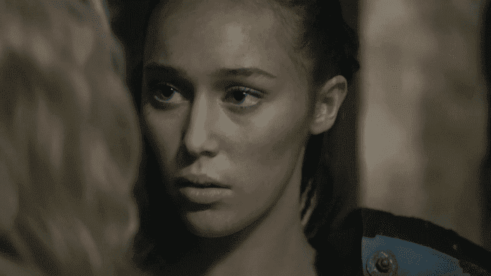 Clarke llega cabalgando again y Octavia la recibe, en plan “¿Qué pasa? ¿Por qué esa cara de mustia?” Pero Clarke no dice ni pío y se va directamente a hablar con Lexa.