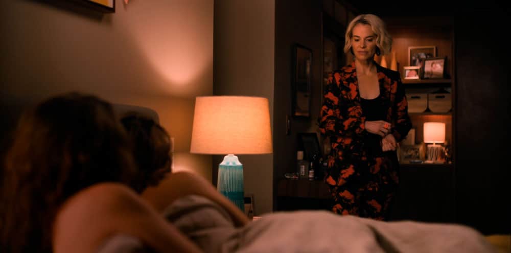 Mientras tanto Tina sufre, porque se da cuenta perfectamente de lo mal que lo está pasando Bette y eso le hace pasar a ella también un mal trago de los grandes. Se toma un buen trago de vino y tiene ese instinto primario que siempre le sale con Bette de terminar con la conversación de golpe. Pero después del trago se acuerda de que precisamente su relación se terminó porque siempre pone los sentimientos de Bette por delante, así que se amarra los ovarios y sigue con la conversación contándole su idea.