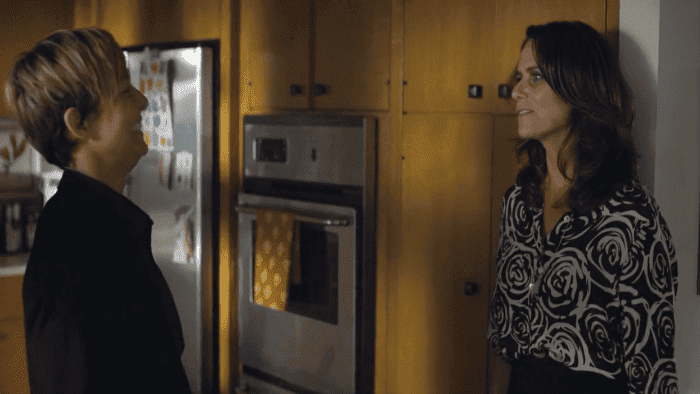 Tammy y Sarah ya están preparadas para ir con todos sus hijos y se dan un beso antes de salir de casa como quien “we got this, babe”, porque no sé muy bien cómo es un funeral judío, pero asumimos que ningún funeral es especialmente fácil o divertido así sobre la base.
