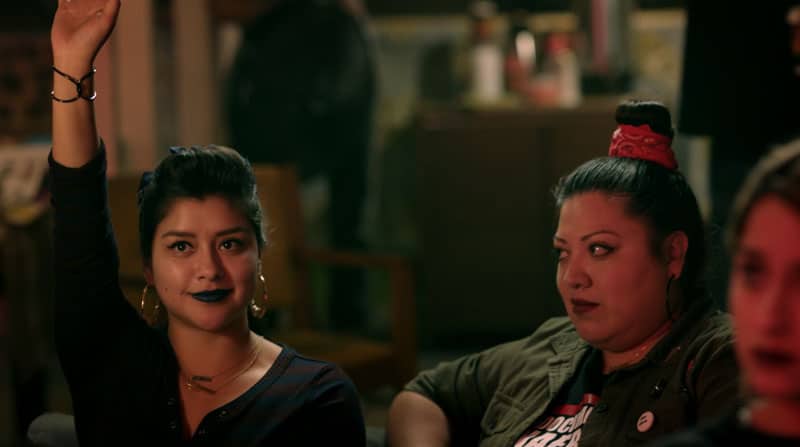Marisol por su parte está en una reunión del grupo de resistencia y Tlaloc, el chico con el que habló el día del vlog, está por ahí dando un discurso. Marisol está, como dirían aquí en España enchochada y ahora sí que bebe los vientos por el tío. Así que cuando él le pide que se quede a ayudarlo con no sé que dice que sí inmediatamente. Y todos sabemos que de ayudar poco porque el flirteo se deja ver.