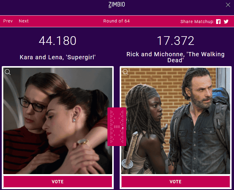 Es marzo y como todos los años comienza la locura de las encuestas Zimbio, donde las parejas más populares de la pantalla chica se enfrentan por el título del mejor ship del año. Y como para demostrar lo que hemos avanzado en representación vemos que tenemos una impresionante presencia LGBT+