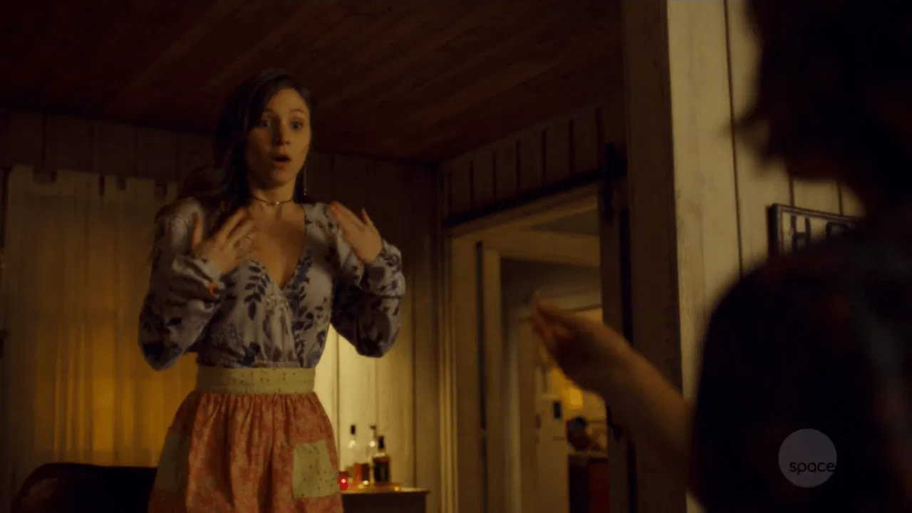A ver si espabiláis, chiquis, que es un demonio. Así que por lo que sea tienen a su madre atada en el granero que intenta hacer entrar en razón a Wynonna explicándole que desde que nació Waverly tiene un demonio detrás que intenta torturarla y matarla, quería hacer un exorcismo y fue cuando el granero se puso a arder y quedó ligado a mamá Earp. Y, añado, yo, ahora vuelve a estar libre en modo amiga repostera.