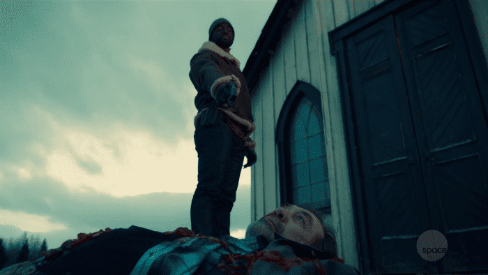 Dolls llega a la iglesia en cuestión y Juan Carlo está fuera, así que le explica que no puede despertarla en medio de una visión de ese tipo porque podría matarla. Como no las tiene todas consigo, Dolls entra igualmente y le comprueba el pulso por si acaso, así que al ver que está bien se queda allí a su lado cual vigilante. Pero de allí a un rato aparecen las Viudas en el presente, que se acercan muy peligrosamente a Juan Carlo, con lo que Dolls se pone en plan modo comando y pretende detenerlas. En el pasado Wynonna conoce la historia de Robert y cómo recibió una bala por lealtad a Wyatt Earp, a pesar de que Wyatt pasaba un poco de su culo. Era un buen muchacho. Nuestra bruja favorita le explica que por culpa de la maldición de Wyatt renacerá como demonio y para evitarlo el pobre accede a ayudar a Clottie a encontrar los huesos de sus hijos. Esto os quiere sonar, ¿verdad? Pobre, pobre e ingenuo Bobo humano…