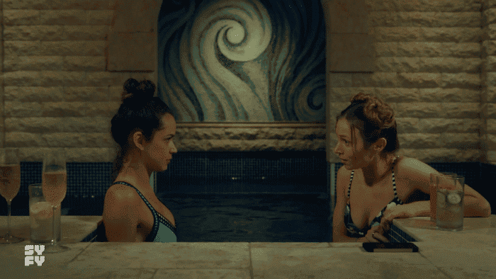 Volviendo a lo importante, Rosita y Waverly están tomando champán y confraternizando. Así descubrimos que Rosita es muy inteligente y tiene nada menos que dos (DOS) doctorados/casi tres. Waverly está muy atenta a su historia pero Nicole no le deja de mandar mensajes. Rosita intenta animarla a que responda porque hay muchos "lo siento" en la pantalla. Así que Waverly le manda un mensaje un poquito agresivo diciendo que ya le contestará cuando le apetezca y luego se arrepiente. Rosita está ahí poniéndole el hombro y siendo muy molona y ojalá amigas para siempre, pero entonces a Waverly no sé qué impulso le da y la besa. LA BESA.