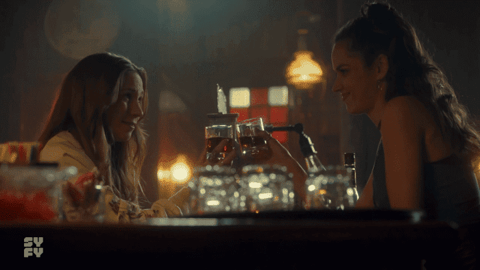 Cuando por fin pueden Waverly y Rosita se ponen un copazo. Realmente lo necesitan. Waverly le agradece que le haya salvado la vida, aunque no puede evitar estar un poco traspuesta porque es un demonio, un revenant, y eso le crea un cierto conflicto. Pero también es una persona maravillosa, en sus propias palabras. Es que no tienen por qué ser cosas excluyentes, digo yo. Waverly le promete que no le contará nada a Wynonna porque si no le tendría que contar también que ella misma puede ser medio demonio. Así que ahora las dos tienen algo fuerte en común que esperemos que no pase de amistad porque mira, me voy a enfadar. De momento no parece que vaya a ser así porque Waverly está muy arrepentida por haberle mandado ese mensaje tan cruel a Nicole, así que Rosita básicamente le da una patada en el culo para que vaya a recuperar a su chica. ¡Así sí!